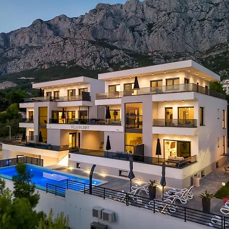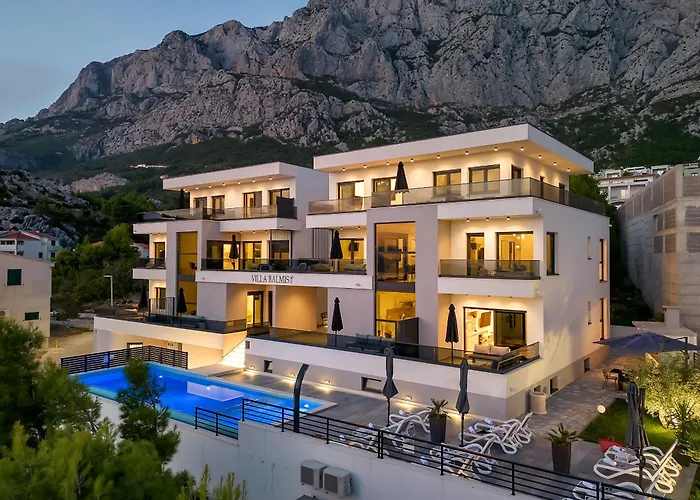6-slaapkamer Villa Balmis House A Makarska bevindt zich op afstand van 2 km van het Park šuma Osejava en biedt wifi. Het appartement heeft een zonneterras waar gasten kunnen genieten van een kust uitzicht op de zee.